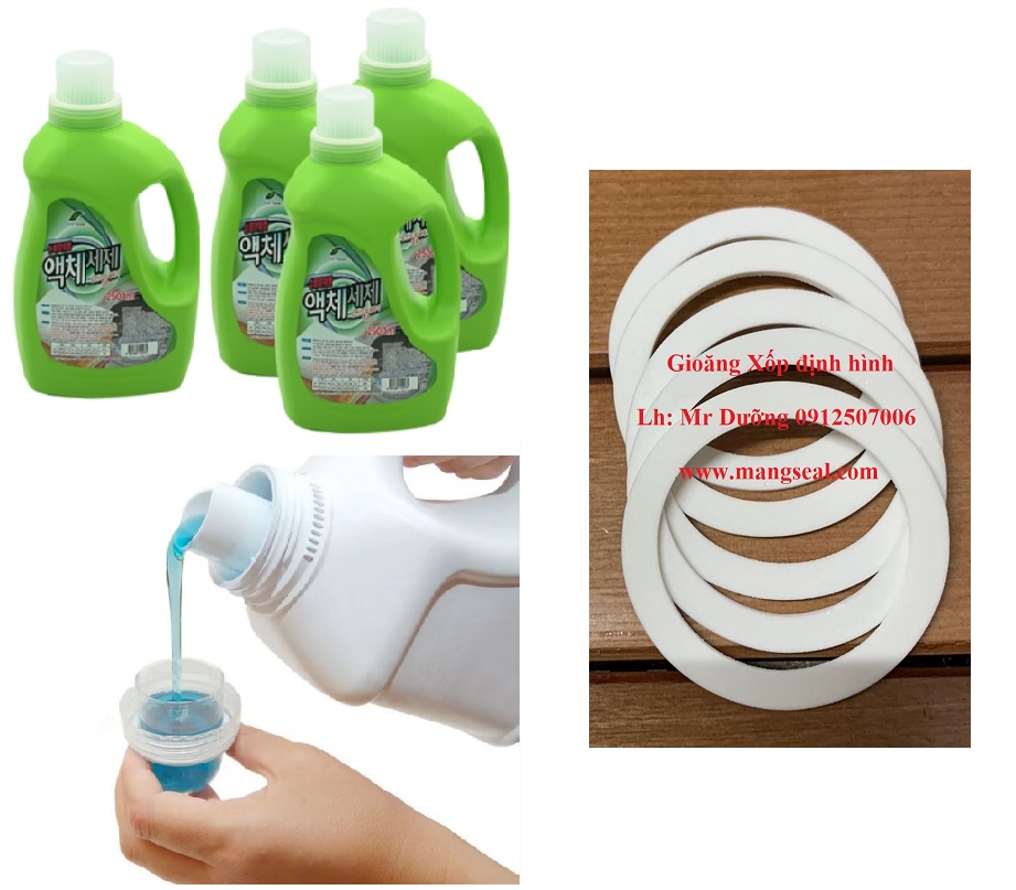 - GIoăng đệm xốp mềm, gioăng đệm cứng cho chai nước giặt, nước xả vải