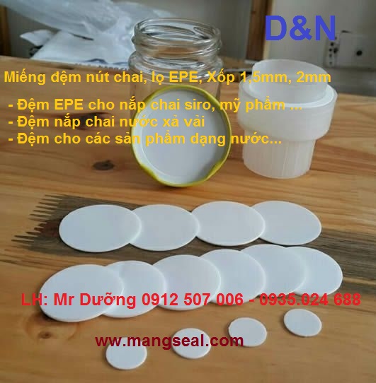-Các loại đệm nút chai dạng mút , xốp cho chai lọ: Có loại dày 1mm, 1,5mm, 2mm...