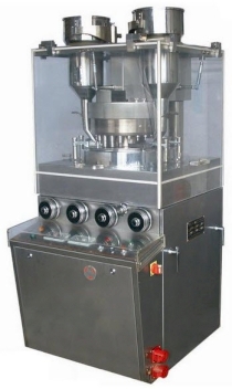 -Máy này dùng để dập các loại vật liệu dạng hạt thành dạng viên, ưu điểm lớn nhất của nó là ngoài viên dạng tròn còn có thể dập các loại viên có hình dạng đặc biệt, viên hai lớp, viên hình vành khuyên và viên hai mặt khắc chữ, trên mâm quay có thể lắp 21 bộ đầu dập chuyển động thẳng, một vòng quay có thể dập 21 viên, độ sâu nạp liệu của vật liệu, độ dầy ép viên đều có thể điều chỉnh, cũng có thế chọn xem viên mẫu. Khi ép viên tốc độ của mâm quay có thể điều chỉnh được (ZPW-21B sử dụng điều tốc biến tần). áp lực ép do hệ thống ép thuỷ lực quyết định, đồng thời có đồng hồ hiển thị áp lực ép viên. Trong hệ thống thuỷ lực có bộ phận bảo vệ quá tải, có thể tự động dừng máy khí lực ép quá tải, tránh cho máy gặp sự cố. Có hộp hút bụi riêng kèm theo máy, có thể hút bụi sinh ra từ quá trình chuyển động của máy thông qua ống hút và miệng hút, tránh cho bụi dính két, đồng thời thu hồi nguyên liệu tái sử dụng.