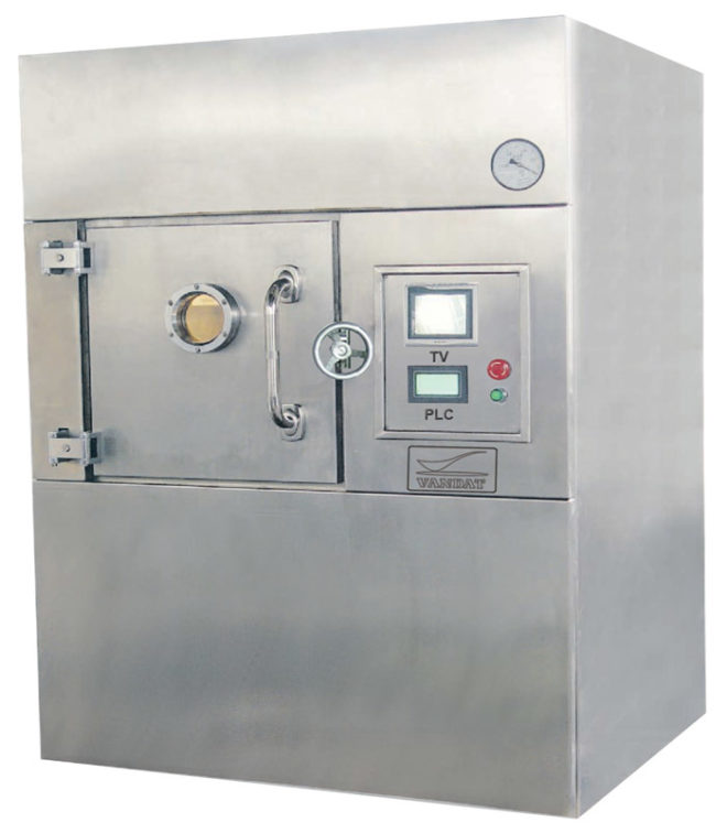 I. Cấu thành thiết bị: Bao gồm tủ gia nhiệt chân không vi ba, cửa vào ra liệu, máy tạo vi ba, máy biến áp, khay chứa liệu, giá treo, bơm chân không, máy tách hơi nước, hệ thống làm mát và hệ thống điều khiển điện.